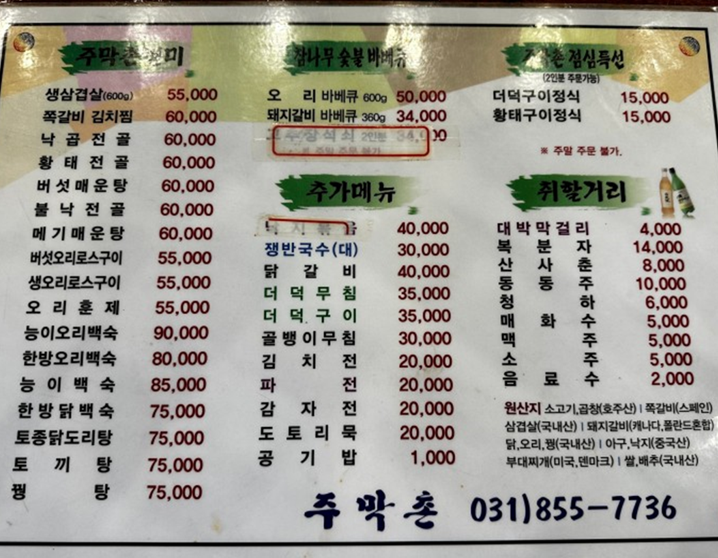 양주 주막촌 메뉴 가격 주차 안내 안녕하세요 오늘은 양주 주막촌 메뉴 가격 주차 안내 드리겠습니다 결론 산속에서 인공폭포와 함께 편하게 자연을 즐기고 싶으신 분들에게 추천해요 수심이 낮아 아이들 물놀이에 좋아요 물놀이 시 보호자 동행 필수입니다 ( 안전 요원 없어요) 야외 식당 으로 습하고 버너를 사용해야 해서 많이 더워요 가을이나 봄 선선한날에 방문하면 좋을 것 같아요 업체 특이 사항 업체명 : 주막촌 영업시간 : 오전 10 ~ 밤 10시 주말 쉬는시간 : 오후 2시 30분 ~ 오후 3시 30분 주차가능 (만차 시 공영 주차장) 예약은 안해도 되요 좋은 자리 찾아서 앉으시면 되어요 입장대기 시간 기본 30분 메뉴 전화 주문 방식 (010-6346-7736/ 031-855-7736) 전화연결이 한 번에 되지 않았어요 주문 후 음식이 나오.. This &That/맛집 2023.08.17