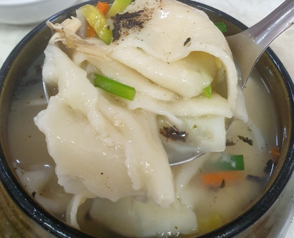 쫄깃하고 수제비가 얇아 어른이 나 아이들 부담없이 먹을수 있을듯 합니다