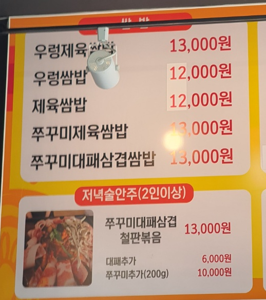 다음과 우렁 제육 쌈밥의 주요 메뉴입니다