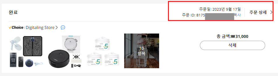 * 주문일자 2023년 9월 17일