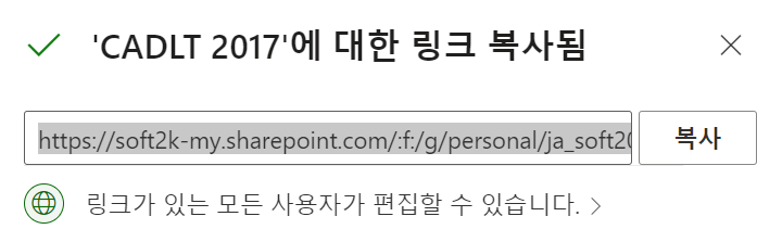 또는 링크 복사를 통하여 메일 본문에 하기 링크 복사 후 공유하여 다운로드 하실수 있습니다