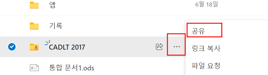 다음과 같이 ... 버튼을 클릭 후 공유를 선택해주세요