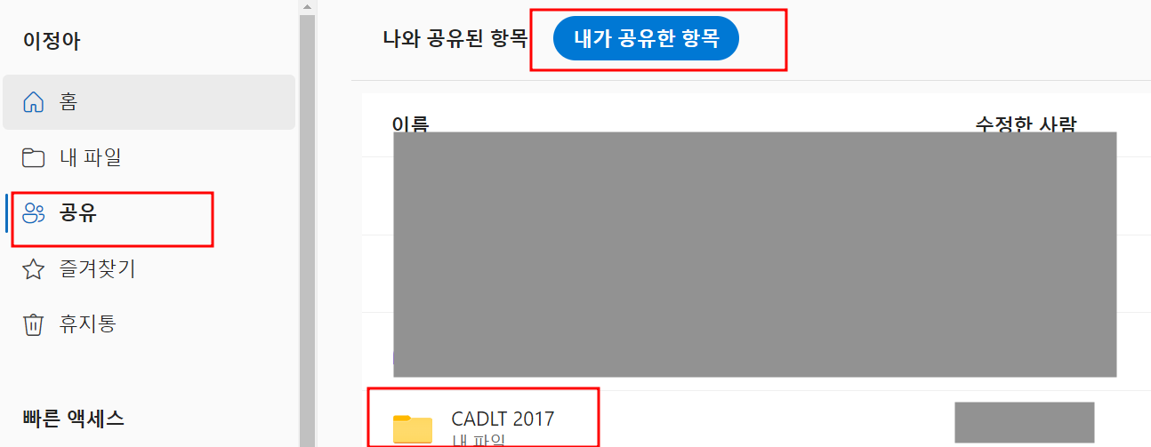 • 원드라이브 홈화면의 공유 탭 -> 내가공유한 항목에서 공유된 자료를 확인할수 있습니다