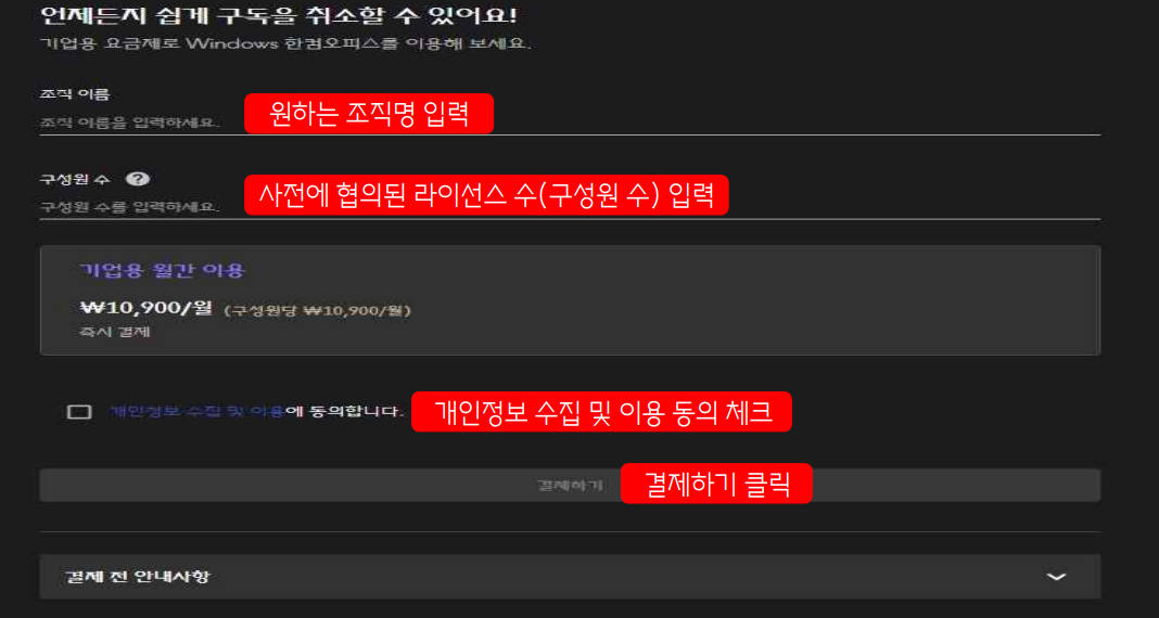 리셀러 통한 구입 시 결제정보는 입력하지 않으셔도 무방합니다