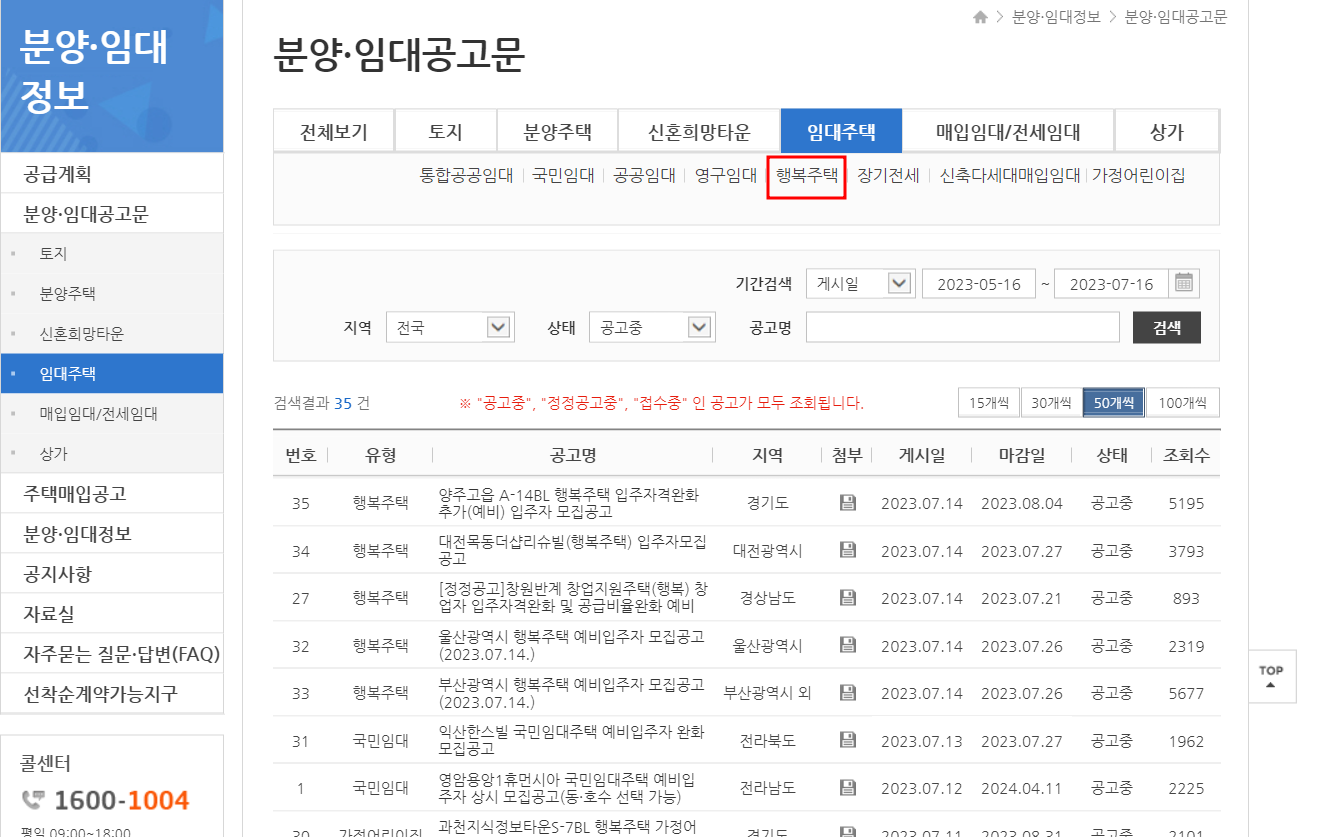 조금만 관심을 가지시면 행복주택 입주가 가능합니다