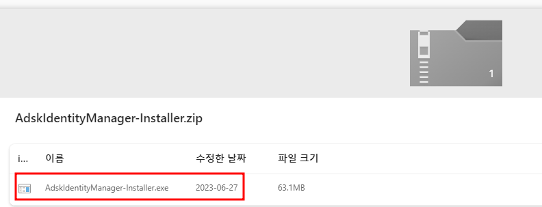 -> 'AdskIdentityManager-Installer.exe' 더블클릭 / 설치실행