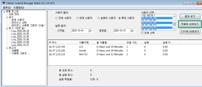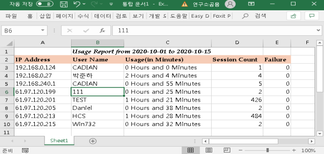 [Export To Excel] 버튼을 클릭하시면, 엑셀로 저장이 됩니다.